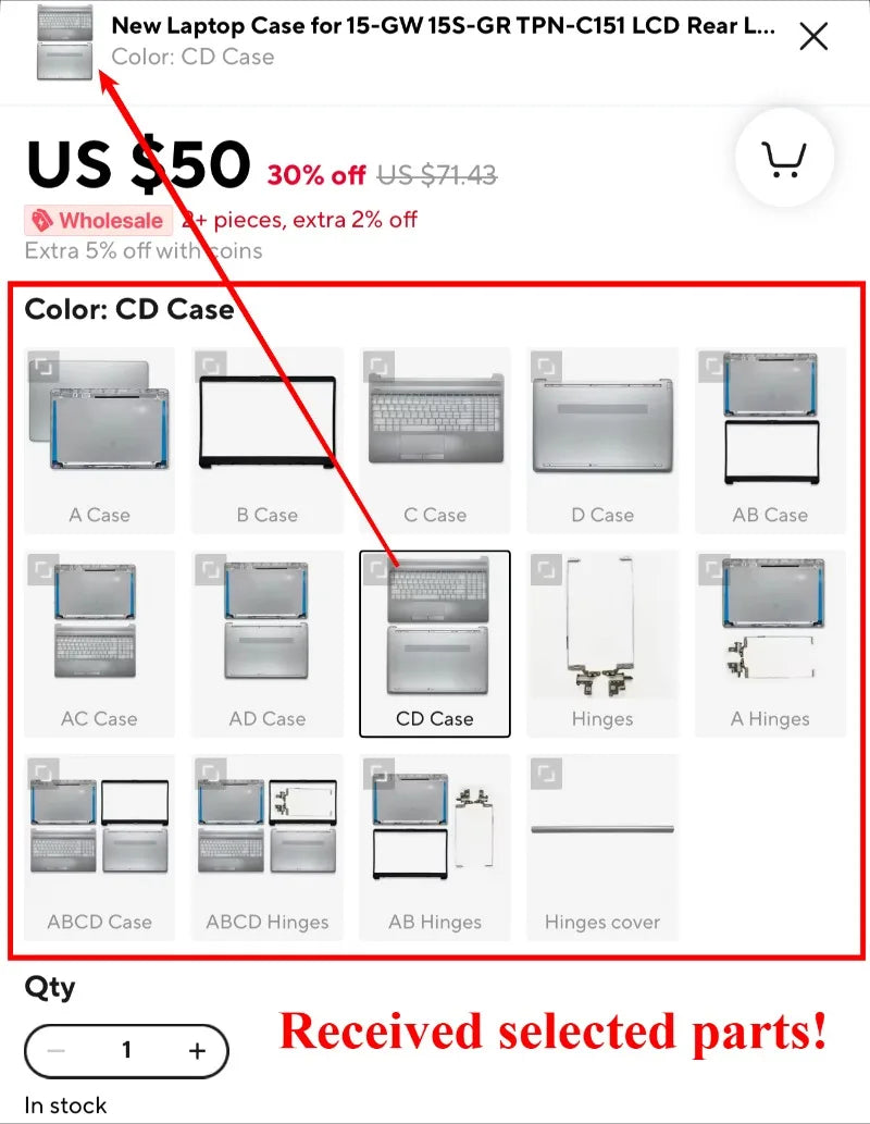 Product Specifications: Laptop LCD Back Cover/Front Bezel/Hinges/Palmrest/Bottom Case